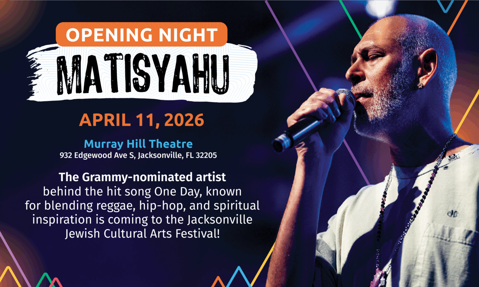 The Jacksonville Jewish Cultural Arts Festival celebrates the richness, resilience, and creativity of Jewish life through art, music, film, literature, and shared stories. This annual community-wide event brings together diverse voices and generations to experience powerful performances, thought-provoking conversations, and cultural moments that inspire connection and reflection. Whether you’re a longtime participant or joining us for the first time, the festival offers something for everyone to discover and enjoy. Stay tuned for more events and registration details.